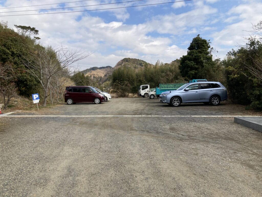 車でお越しの際は鳥居をくぐり、参道途中を右に曲がると駐車場に行けます。