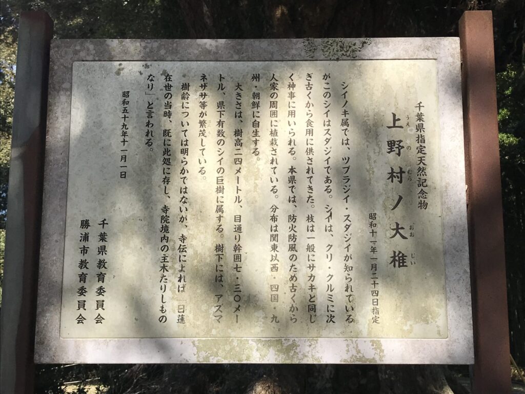 寂光寺は勝浦市にある日蓮宗の寺院です。境内の樹高24mのスダジイの樹齢は7・8百年と言われている。上野村ノ大椎(うえのむらのおおじい)として有名で、県指定天然記念物です。