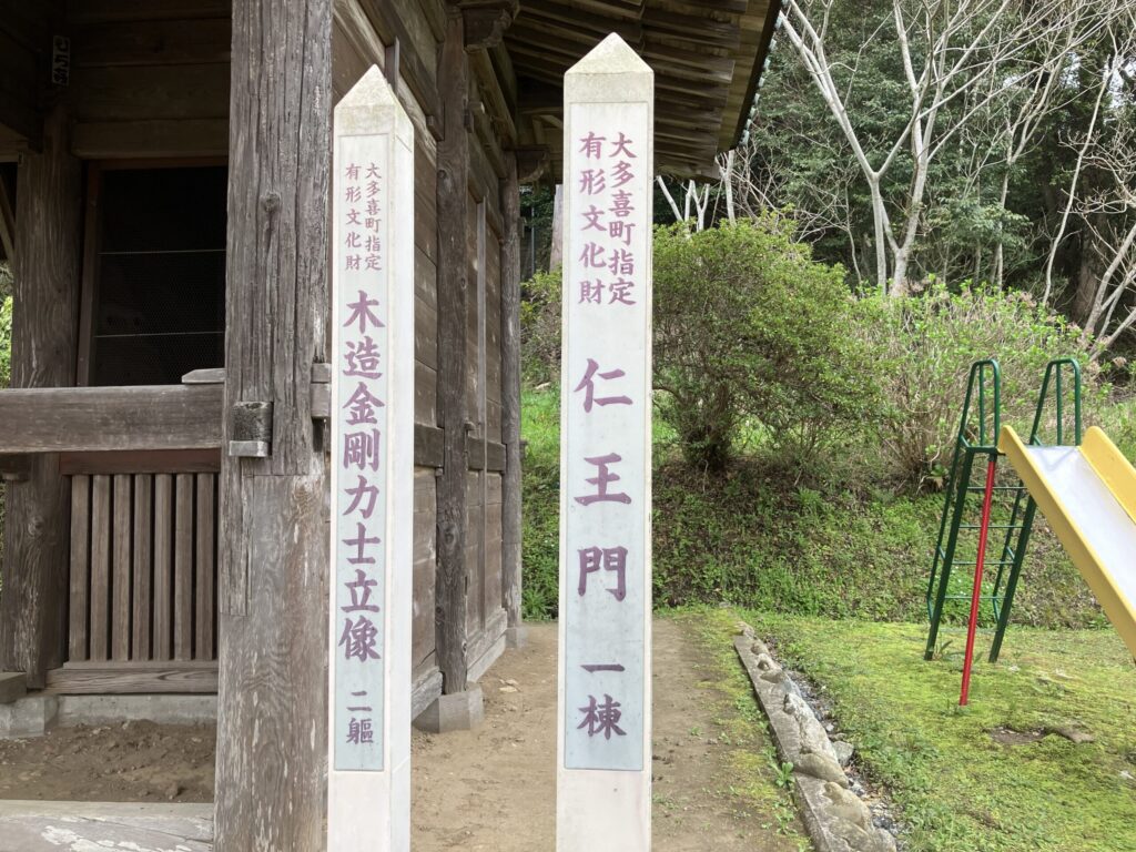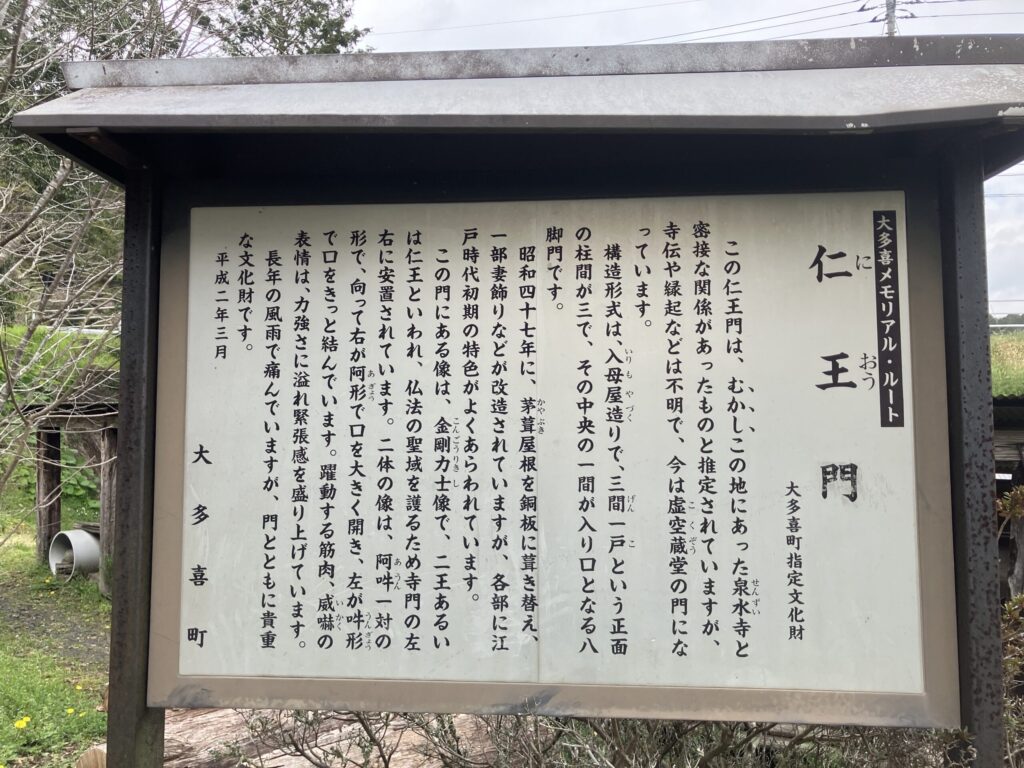 この仁王門は、むかしこの地にあった泉水(せんずい)寺と密接な関係があったものと推定されていますが、寺伝や縁起などは不明で、今は虚空蔵(こくうぞう)堂の門になっています。