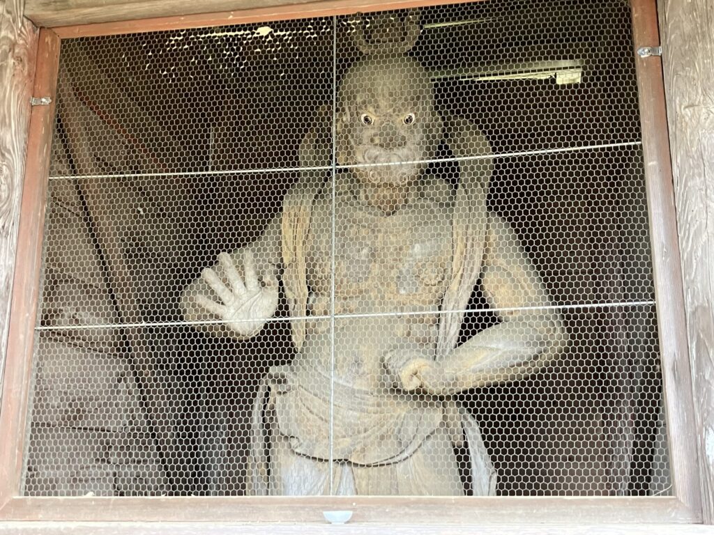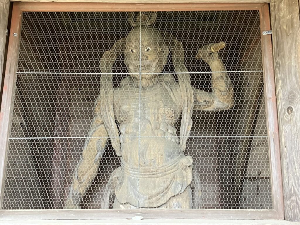 もともと木像は六所神社に近接した大山祇神社の本地仏であったといわれている。大山祇神社は、神仏習合の修験道と関係があり、ここに仏像があった理由があると思われる。