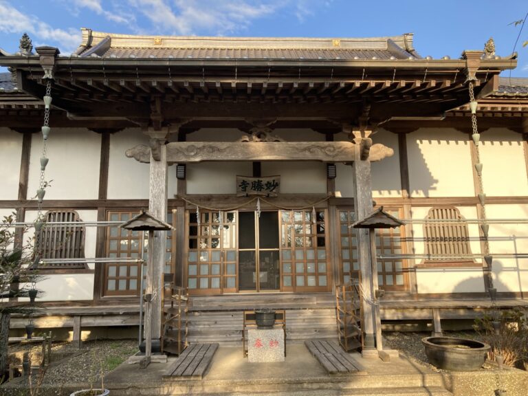妙勝寺は大多喜町の寺町通りにある日蓮宗の寺院です。現在は子育て安産を祈願する参拝者が多い。寺町通り沿いにはお寺がたくさんあるので、歩いてゆっくり参拝したい。