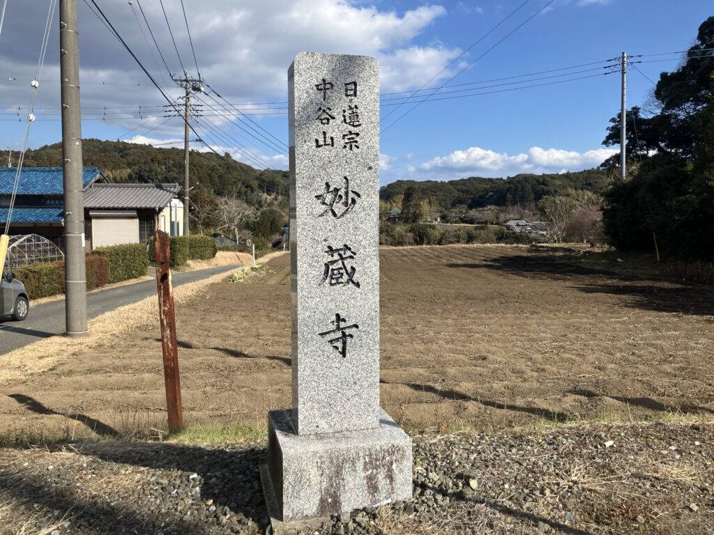 妙蔵寺は勝浦市にある日蓮宗の寺院です。国道297号線に立っている寺号碑を曲がりますが、道幅が狭いので注意してください。