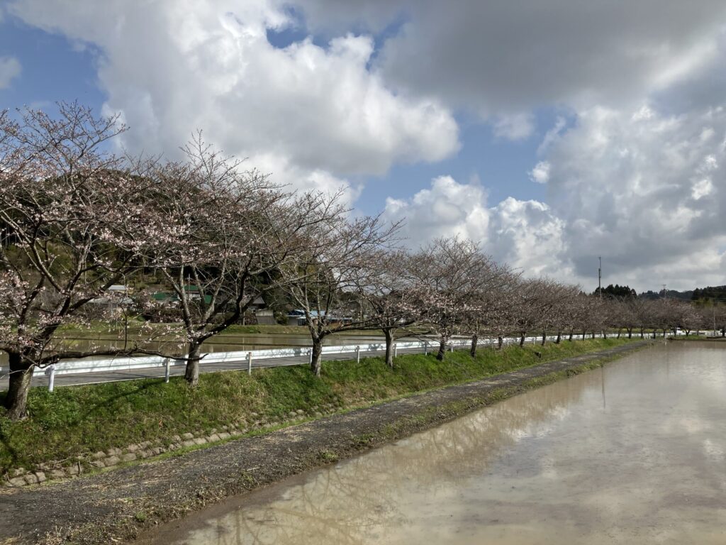 田んぼの向こうは5・6部咲きですが、もうすぐ満開。